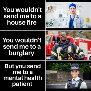Let’s never forget: the police ask mental health services to deal with people who break the law all the time and yet we don’t see nurses circulating memes on social media asking why we send them to “deal with criminals” – they know it’s more complicated than that.